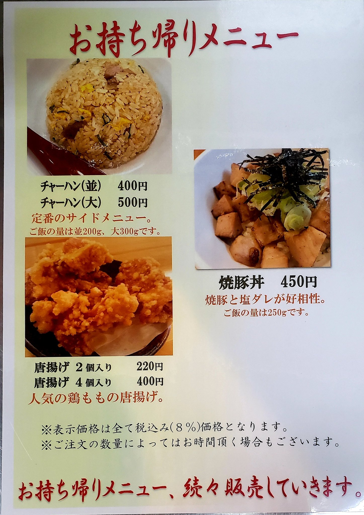 “現在きんせいグループではテイクアウト商品絶賛販売中です('ー')/~~ きんせい高槻駅前店の現在のメニューです! 今後麺類も追加予定です(^^)d 是非ご利用下さいm(__)m #きんせい #きんせい高槻駅前店 #高槻 #ラーメン #テイクアウト”